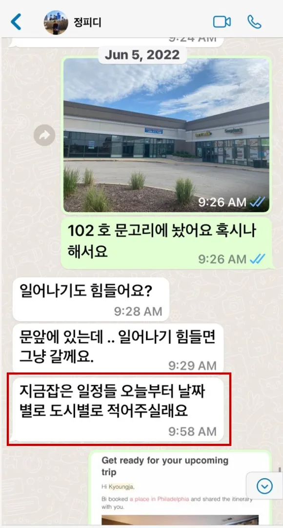 6월5일 이혁진이 아픈 틈을 타서, 일정 정보를 달라고 아프다는 이혁진에게 요청하였다.