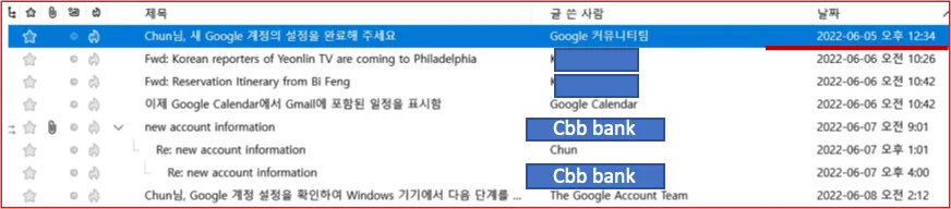 정천수와 권혁은 새로 개설한 구글 계정으로 변호사와 몰래 소통하였다.