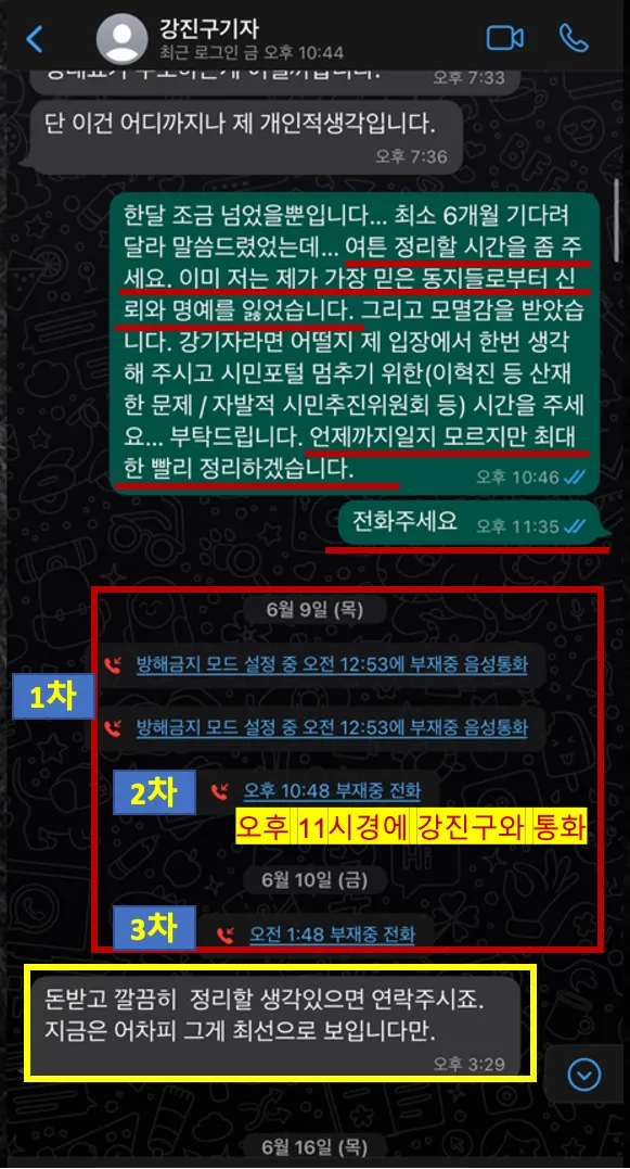 강진구가 정천수에게 전화