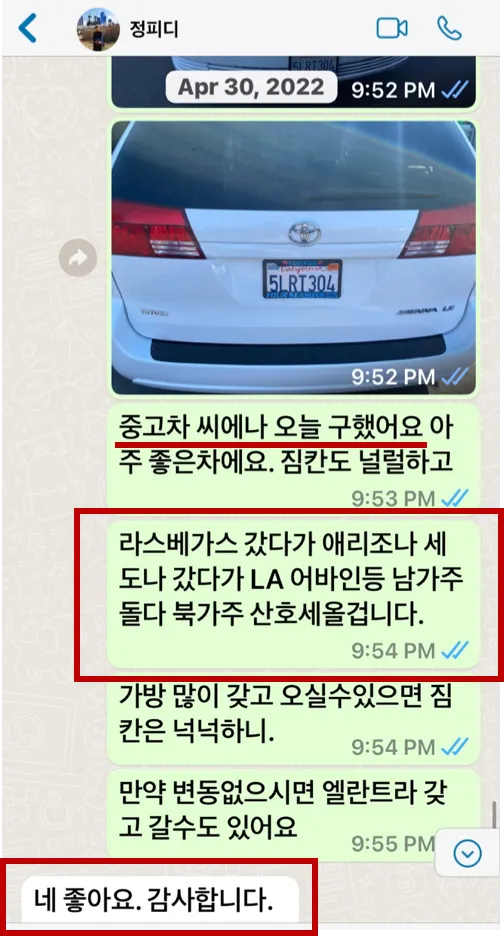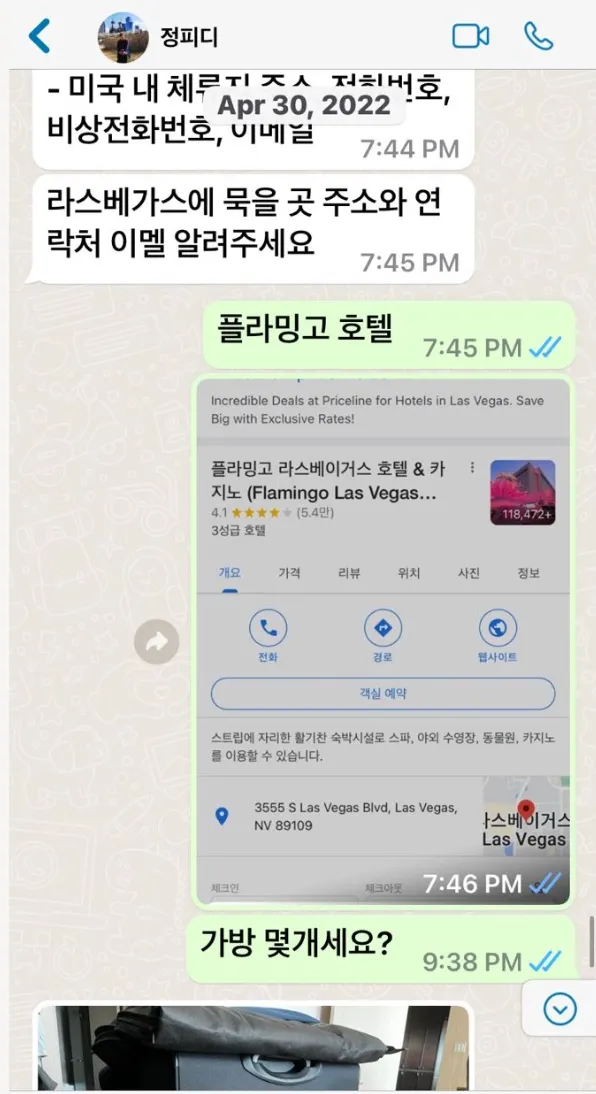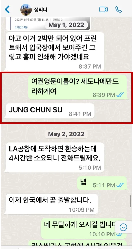 이혁진이 여행경로를 정천수에게 공유하였고, 이에 대해 정천수는 “네 좋아요. 감사합니다” 라고 답한다.