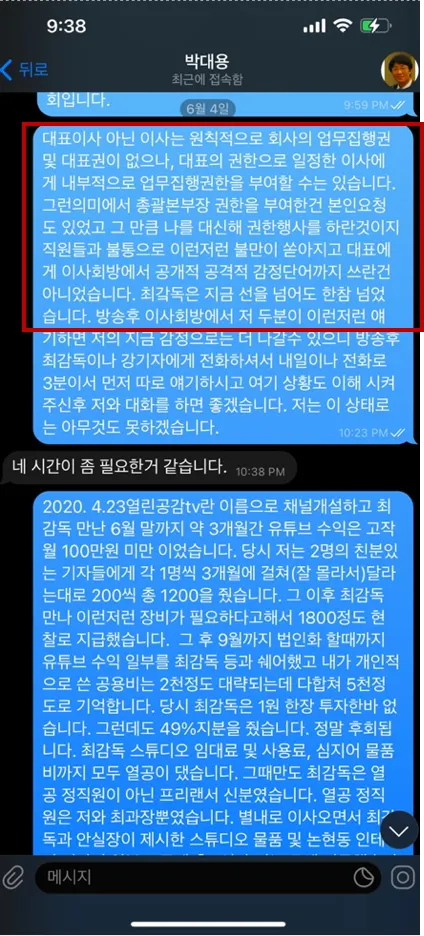 정천수는 (미동부)6월1일 이사회에서 주식도 나눠주고 열린공감을 떠나서 혼자라도 시민포털을 만들겠다고 발언을 했다. 신념이 생겼다고 했다.