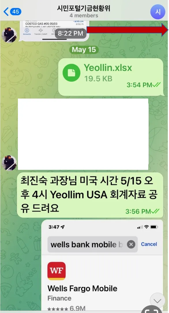 또한 5월10일 개설한 Wells Fargo 은행 계좌 정보도 공유하였다.