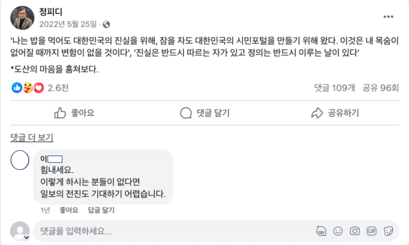 정천수는 시민포털은 열린공감TV가 추진하는 것이 아니라고 주장하였으나, 이런 행동들은 교민들로 하여금 시민포털은 열린공감TV에서 추진하는 것이라고 생각하게 만들었다.