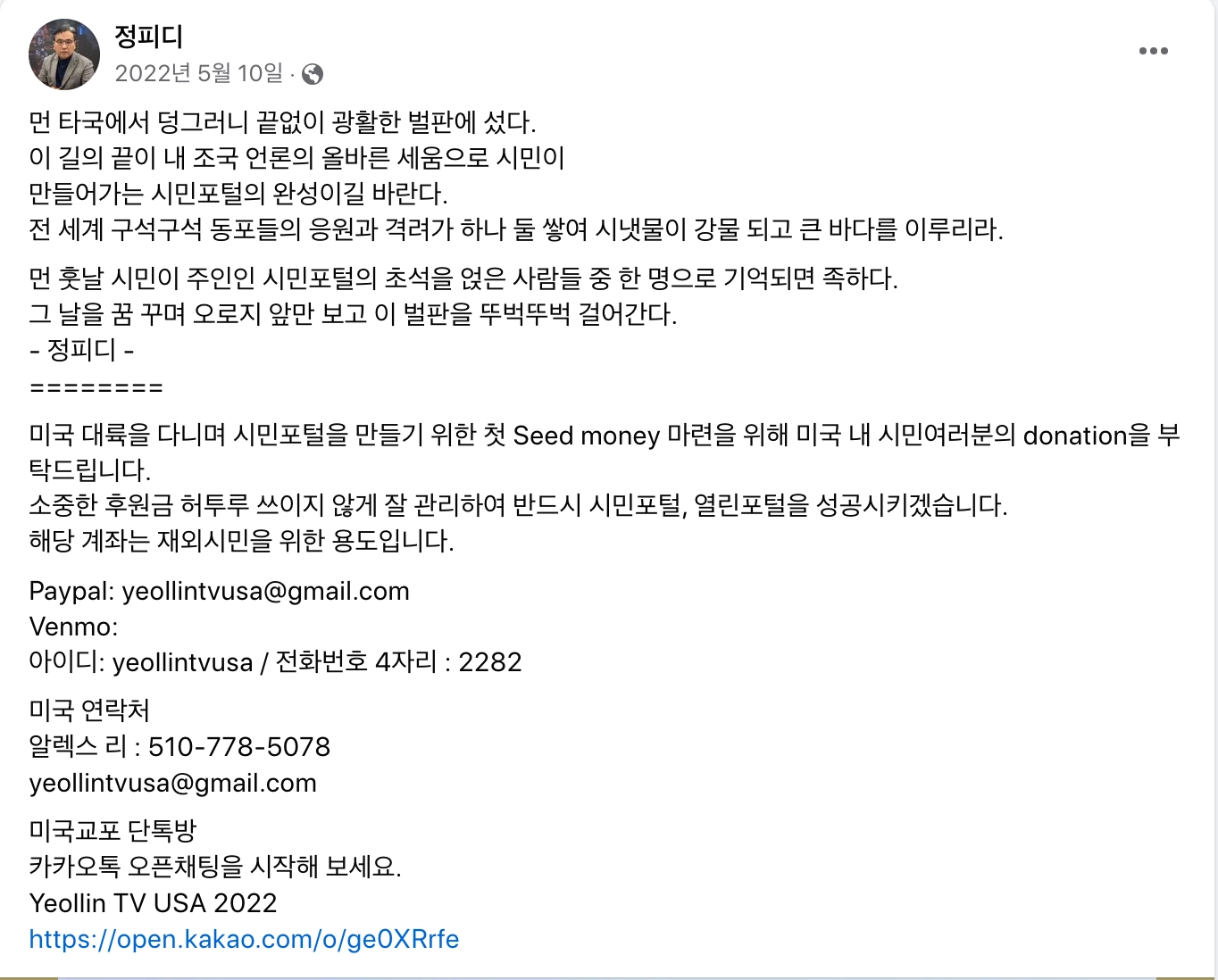'We warmly welcome all citizens who have joined Yeollin Gonggam TV USA 2022.
