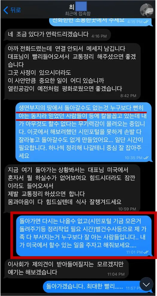 돌아가면 다시는 나올수 없고, 별건수사등으로 제 가족 다 부서지는거 누구보다 잘 아는 사람들입니다. 내가 미국에서 할 수 있는 일을 주자고 해줘보세요.