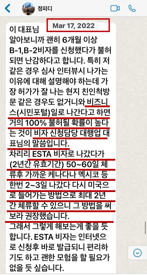 ESTA로 미국입국하여 장기체류하는 방법을 상담받았다.